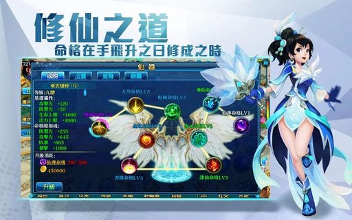 《仙府奇緣》“仙器”中的翅膀集華麗實用於一身。混元翅膀不僅可以通過升級還提高屬性