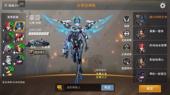 每個英雄都擁有不同的天賦、普通、終極技能,例如快跑衝鋒的艾倫、隱身刺殺的朧、飛天對地轟炸的菲亞!不同英雄都有進攻、防禦、輔助的定位,根據團隊需求,在實時多人對戰中可以靈活調整出戰英雄,制定克敵的戰術策略!
