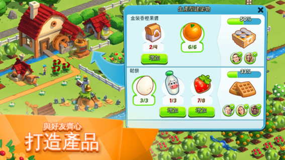 • 與朋友在社群農場中通力合作,互相收割及灌溉彼此的作物。幫助好友,一同成長!