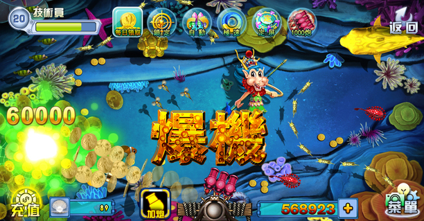 機捕魚的快感和刺激! 玩法:玩家控制魚炮,發射炮彈,攻擊遊動的各種魚類,完成成就,收獲獎勵。
