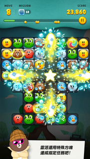 *移動LINE卡通明星方塊,並將3個相同的方塊排在一起吧!
