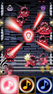1. 當殭屍靠近並準備攻擊你時,它會變得興奮,身體會發光,眼睛變成白色,但是疏於防備,此時請彈奏和殭屍同色的琴鍵,擊殺它!