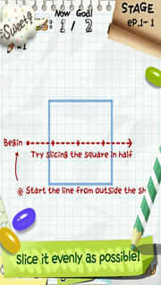 "塗鴉切割 Slice It !"中玩家需要把各種形狀的圖片切割成相同大小的若干個部分。