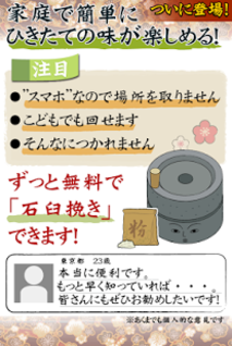 あの懐かしい伝統石臼を無料で回せる!無料で挽ける!無料で楽しめる!