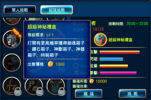 必打的組隊精英BOSS,獎品很優渥,我的威猛虎也是這來的