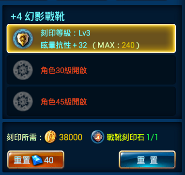 魂之刃力 :20等後開啟,需要藍色立方體強化