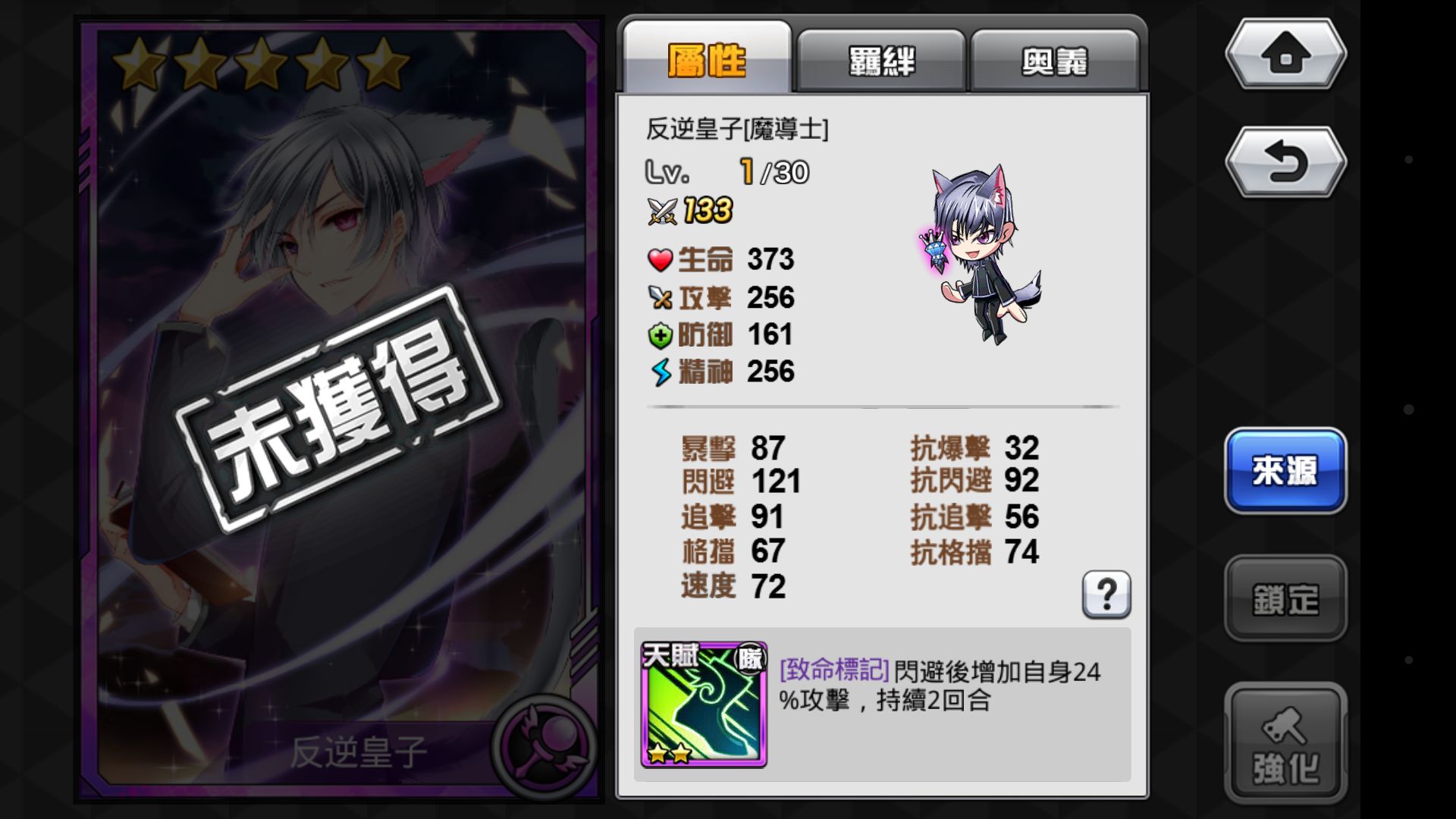 2星致命標記(隊長技):閃避後增加自身24%攻擊,持續2回合。