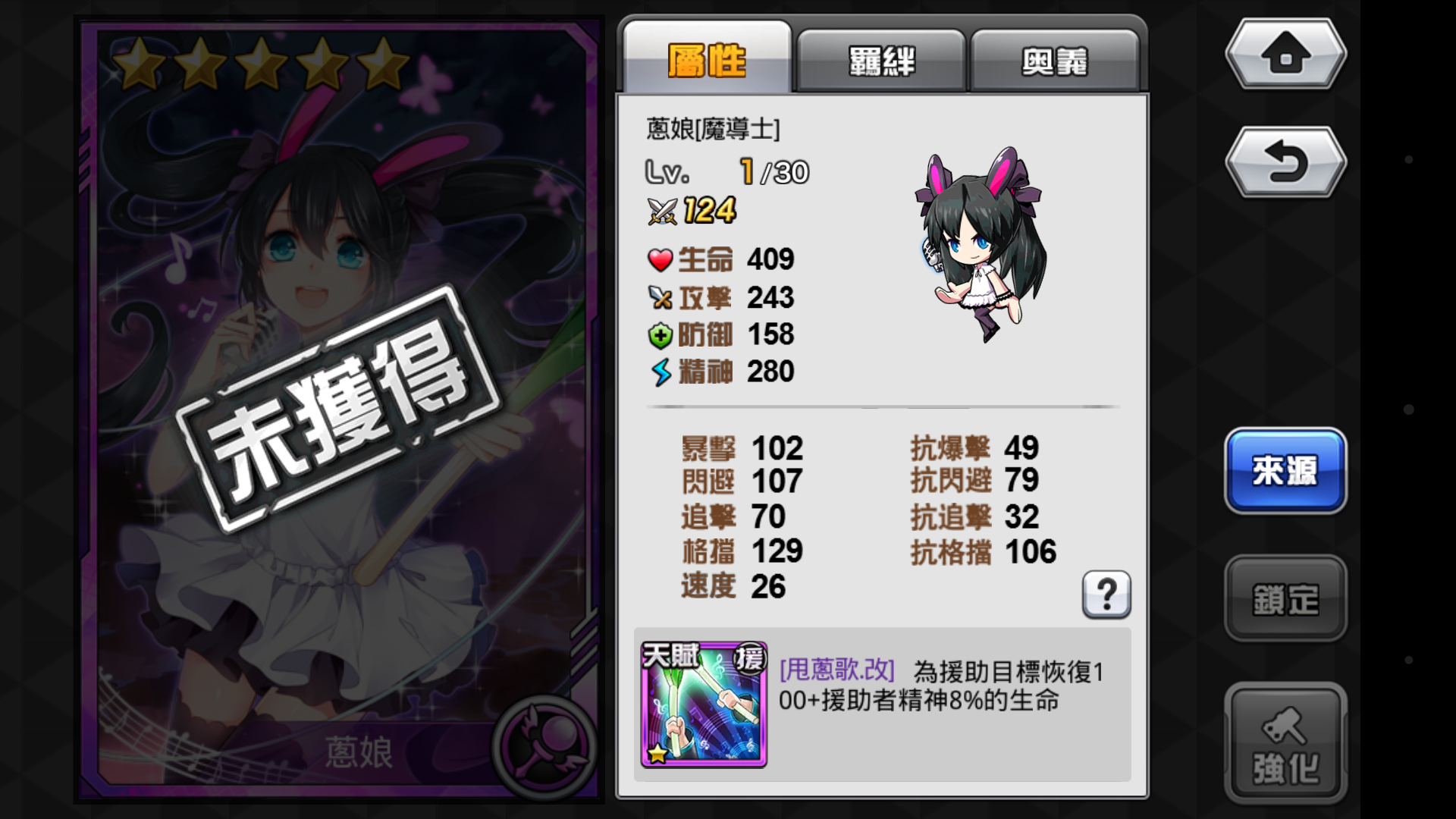 1星甩蔥歌.改(隊長技):為援助目標恢復100+援助者精神12%的生命。