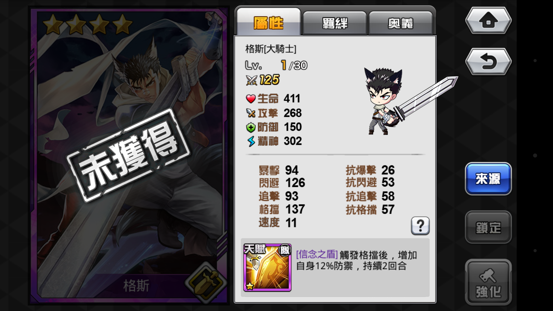 信念之盾(隊長技):觸發格擋後,增加自身12%防禦,持續2回合。