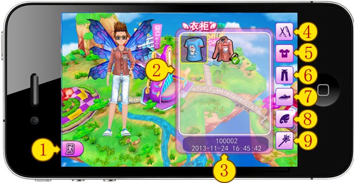 1.返回按鍵,如需推出衣櫃介面只需點擊左下角這個返回介面就可以了