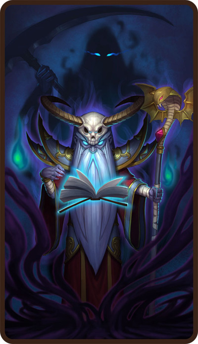 死神召喚 | 召喚死神斬擊戰場上最弱的敵人。其損失的生命值越多,則造成的魔法傷害值越高並附加眩暈效果 |