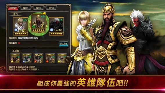 被困在黑暗時空裂縫的中西曆史英雄們共同對抗邪惡之王,每位英雄都有自己的故事,每位英雄也都有自己獨特的技能,隨著強化與進化英雄們將會獲得更強大的力量。努力的將每位英雄納入自己的麾下吧。