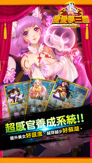 《 愛愛夢三國 》精美卡牌設計型態進化,媲美百萬亞瑟王的卡牌收集系統,提升美女好感度,後宮卡牌三段進化,盡顯超刺激感官誘惑,Q萌妹紙袒露酥胸,生動表情讓人把持不住!即使身在亂世,也要擁佳麗三千,酷炫趙雲、霸氣呂布一秒進化變男神!妹紙最愛,男子漢的福音!