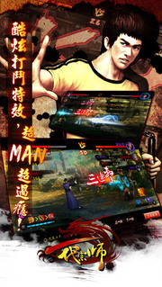 對於遊戲的戰鬥表現方式,《一代宗師》不但在視覺上採用獨創的深度透視分層技術,華麗的武功絕學、超炫的特效,爽快的節奏配合上變化的遊戲場景讓家感受到街機式的爽快打鬥。更特別的是,在遊戲中玩家可以隨意的組合所學到的武學招式,藏經閣中收藏了各種武林秘笈,相信玩家絕對能夠樂在其中。