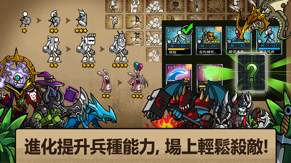 - 打造大型軍團,抑或是以一擋百的超強兵種!