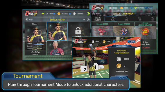 JS SHOP: Earns JS coins in Exhibition and Tournament modes. Spend it in the JS Shop for new racquets, shoes, apparel and training to improve your character's stats.