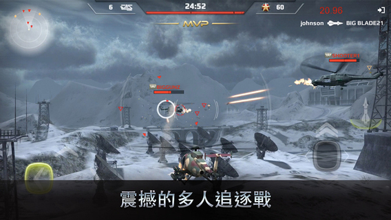 激烈的多人空戰競技,操作簡單,容易上手,能完美的展示武裝直升機華麗的空中動作。