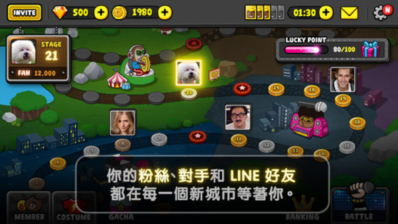 獲得比對手更高的分數,就能得到很多金幣和粉絲。現在就加緊腳步!