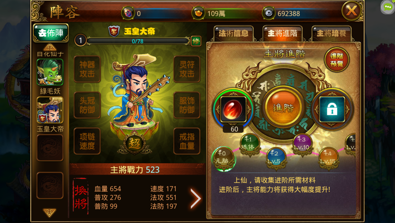 主將前三級進階只需要達到指定的等級以及獲得相應的進階丹就可進階。但如果想突破限制繼續進階,則在消耗進階丹的同時還要消耗一定量的主將魂魄。