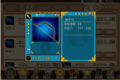 級可使用「檍木弓」,為罕見卡片,可升級至