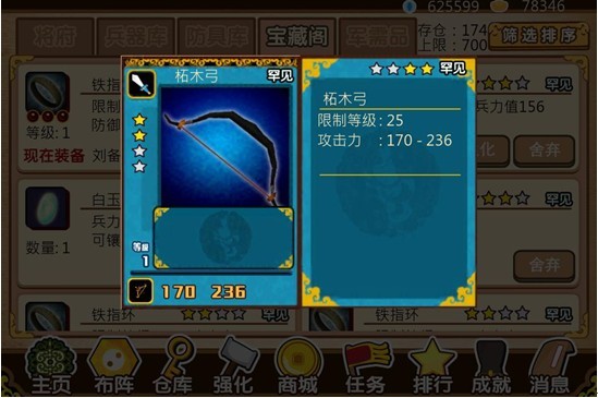 遊戲裏每個角色都有裝備限制,能使用帶有攻擊屬性弓類的只有武將卡片,