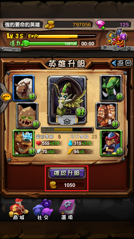 升級英雄能讓你的英雄變更強。升級英雄的流程: