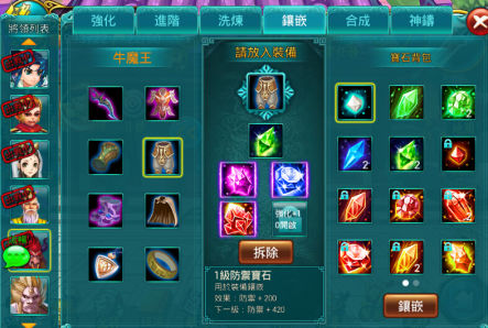 同一件裝備同類寶石最多只能鑲嵌一個;