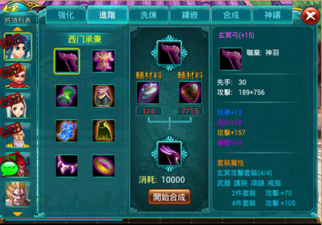 進階可以改變裝備品質,同時可進階為套裝,獲得套裝屬性。
