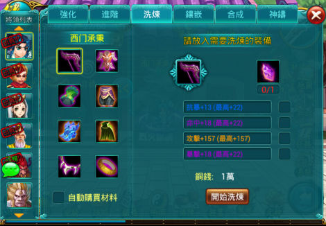 每次洗煉需要放入與裝備品質一樣的洗煉石;