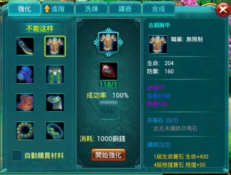 鑲嵌/摘除寶石不用消耗任務物品,百分之百成功。
