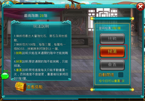 重置說明:爬塔進度每天只能手動重置