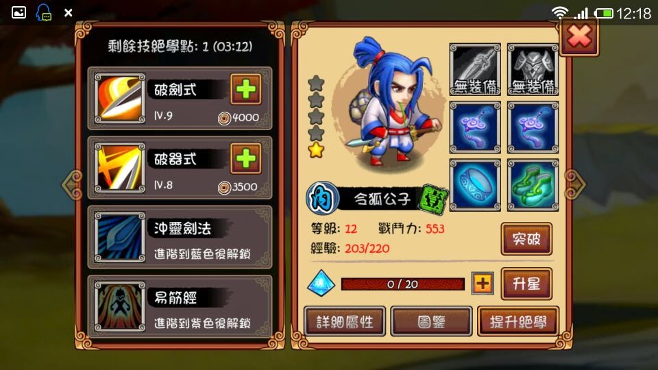 另外,每個俠客的技能是可以通過金幣和技能點來進行升級的,技能點使用完了以後只要等待就可以恢復,而金幣只能慢慢攢了,經過測試,技能點基本不是問題,而金幣則非常有限,只能慢慢累積