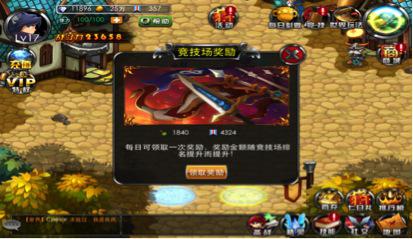 3.玩家可以在每日福利中领取每日的竞技场奖励,每日只可领一次。"