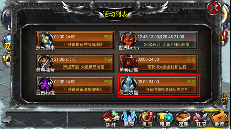 1.游戏中有五种副本类型,包括主线副本、精英副本、远古秘境副本、多人副本、保卫水晶