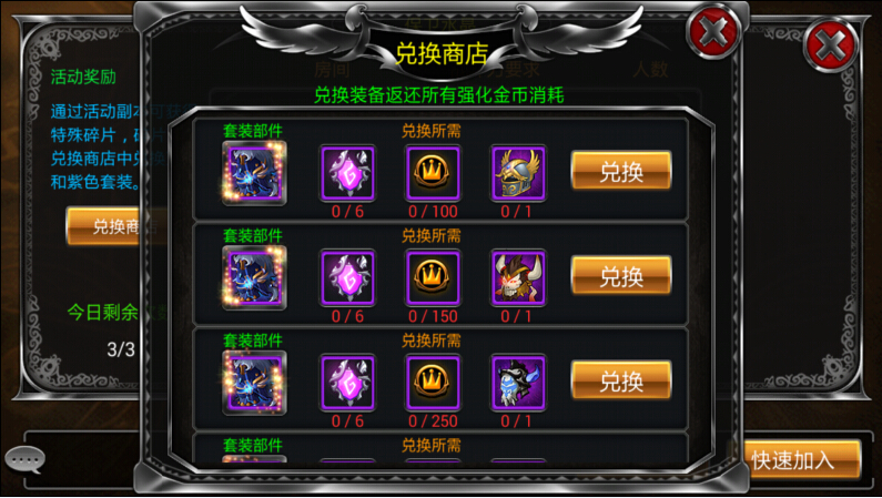玩家需要针对自己的战力去选择开启副本,每日3次,必须满足4人才能开启相应副本
