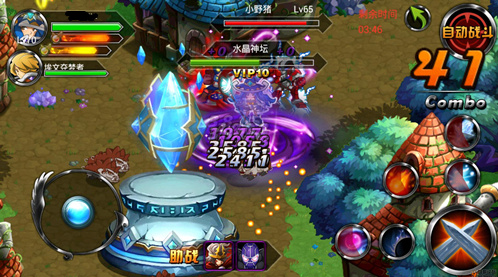 2.副本中使用摇杆控制主角移动,选择技能进行战斗,当然也可以选择自动战斗进行战斗;