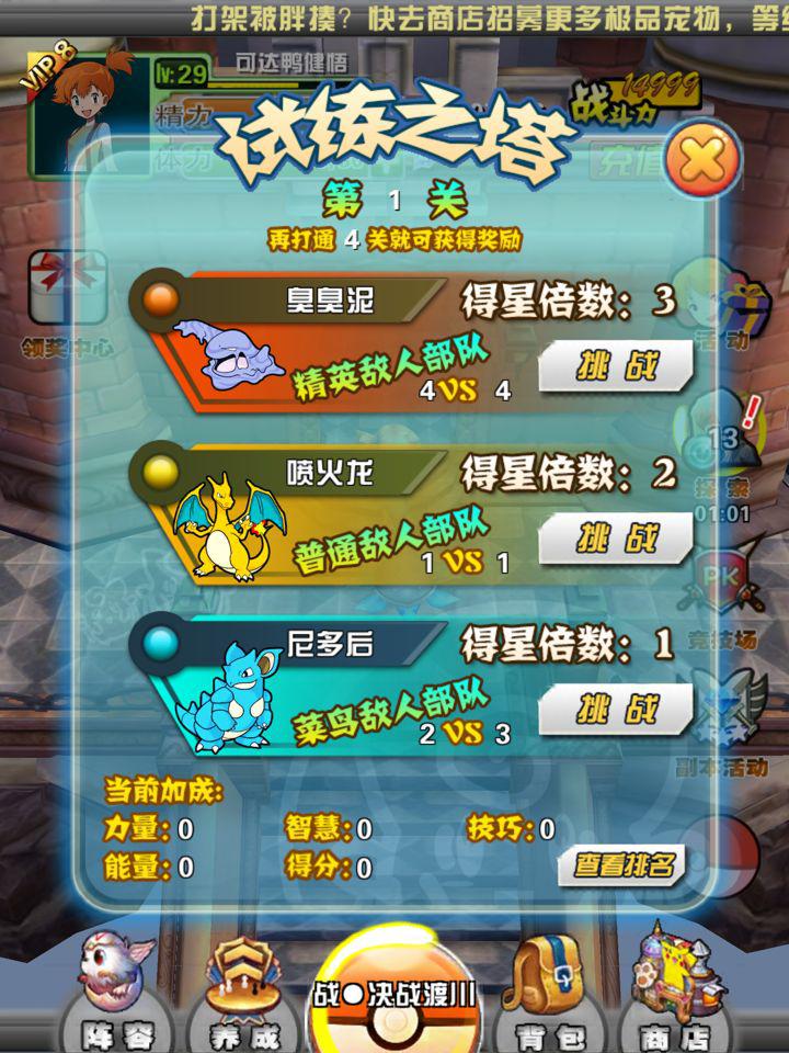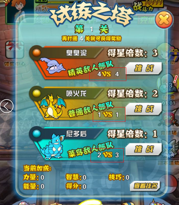 每個難度的關卡下麵都是有說明這個1VS2、4VS5、4VS4.之類的,這個是描述這個寵物出陣的數量,這個也是非常關鍵的,大家可以根據自己的喜歡來搭配,當然都是進行強強搭配來進行戰鬥。