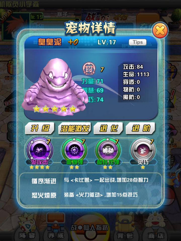 【寵物緣分】:每一位寵物都有不同的精彩故事,當一些特定的寵物同時上場後,還可以激發寵物的潛在能力,同時裝備特定技能,還能大幅提高寵物的戰鬥能力,這便是寵物的緣分。例如下圖:臭臭泥和卡比獸一起出戰就會增加28點的智力,裝備火力驅動增加15點技巧的哦