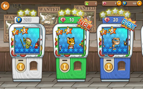 使用友情點數可以抽友情扭蛋機,使用寶石或扭蛋卷可以抽寶石扭蛋機,而獲得的英雄將會有星級上的差異。當關卡無法順利通過時,不妨考慮來抽個扭蛋吧!