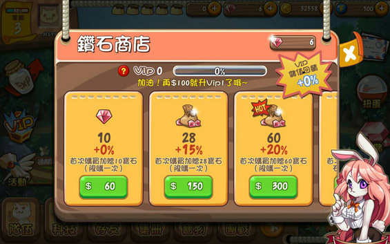想要扭蛋,除了友情抽以外,其他的部分就會需要使用到寶石哦~儲值一定金額除了會提升VIP等級,也會有一定數量的寶石回饋!