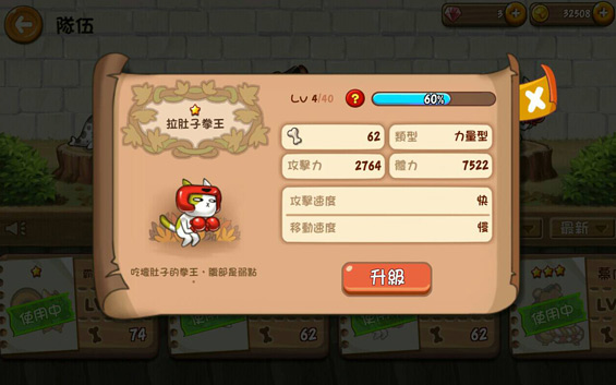 ★點擊英雄就可以馬上查看召喚需要的骨頭數量、類型、攻擊力、體力以及攻擊跟移動速度。但是每隻相同類型的英雄在實際上場後的作戰方式也都不一樣,這就要考驗勇者的搭配,慢慢調整出自己的理想隊伍,並順利通過各個關卡哦!