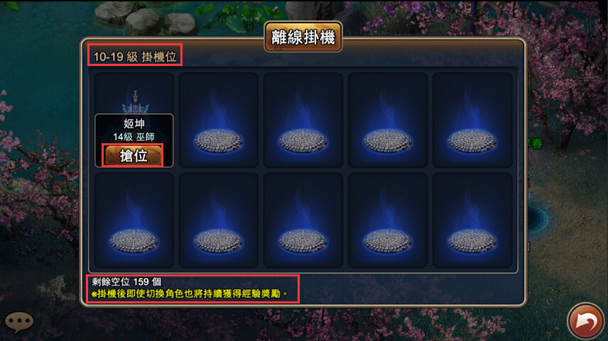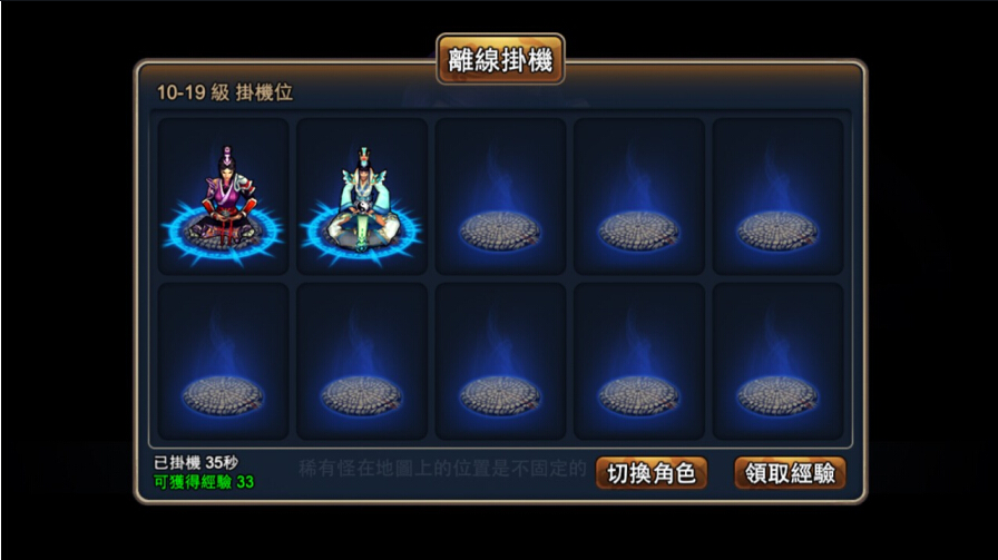 4.掛機後即使切換角色也將持續獲得經驗獎勵,於上線後自動獲得經驗獎勵。
