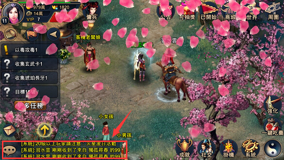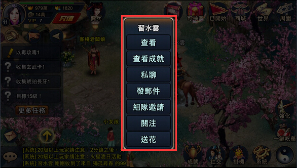 送花完成後,雙方遊戲畫面都會出現滿滿的花瓣灑落,且對話視窗也會推播用系統顯示的文字效果哦~