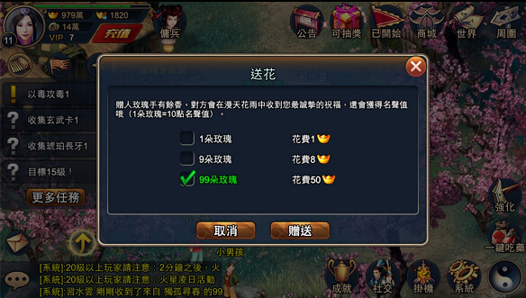 贈人玫瑰手有餘香。對方會在漫天花雨中收到您最誠摯的祝福,還會獲得名聲值歐