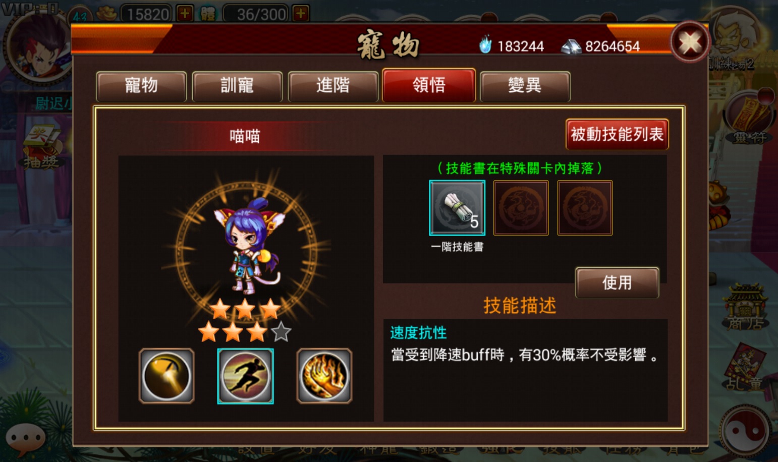 3.要洗寵物的技能,只要使用寵物技能書就可以進行被動技能得學習。寵物洗技能無法更改主動技能,但有概率替