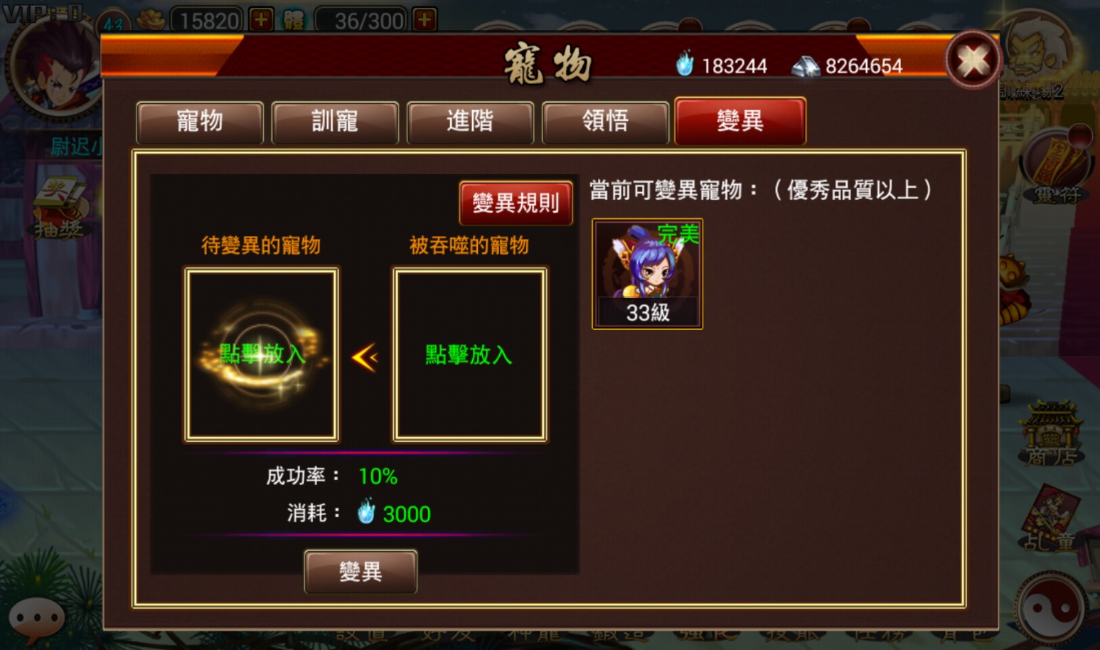 2.寵物也可以通過吸收吸取老的寵物轉化為經驗。