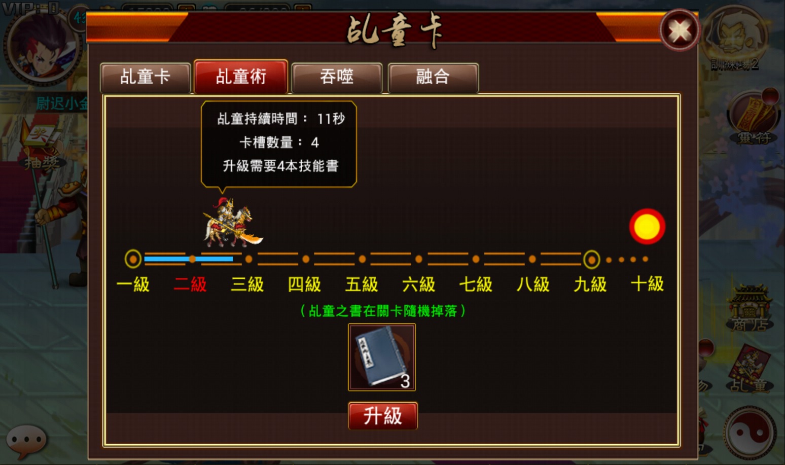 級別可以通過《變身之書》提升,滿級10級。每個級別升級需要消耗的變身之書數量為等級*2。