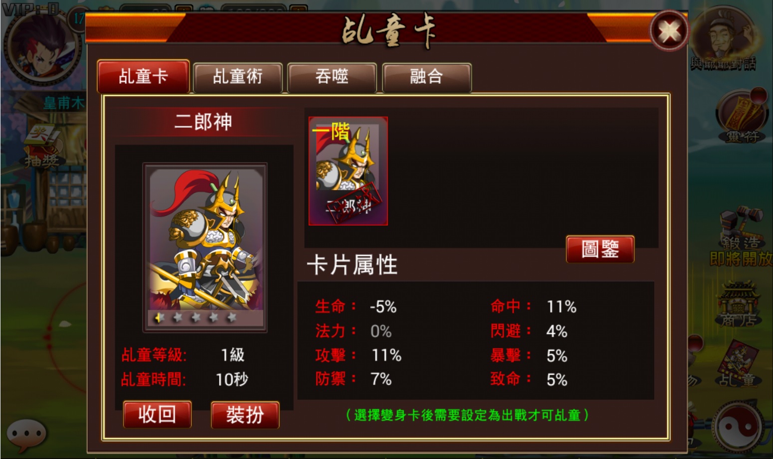 1.玩家可以將不用的廢卡給主卡吞噬,吞噬掉後,主卡將獲得經驗的增加。