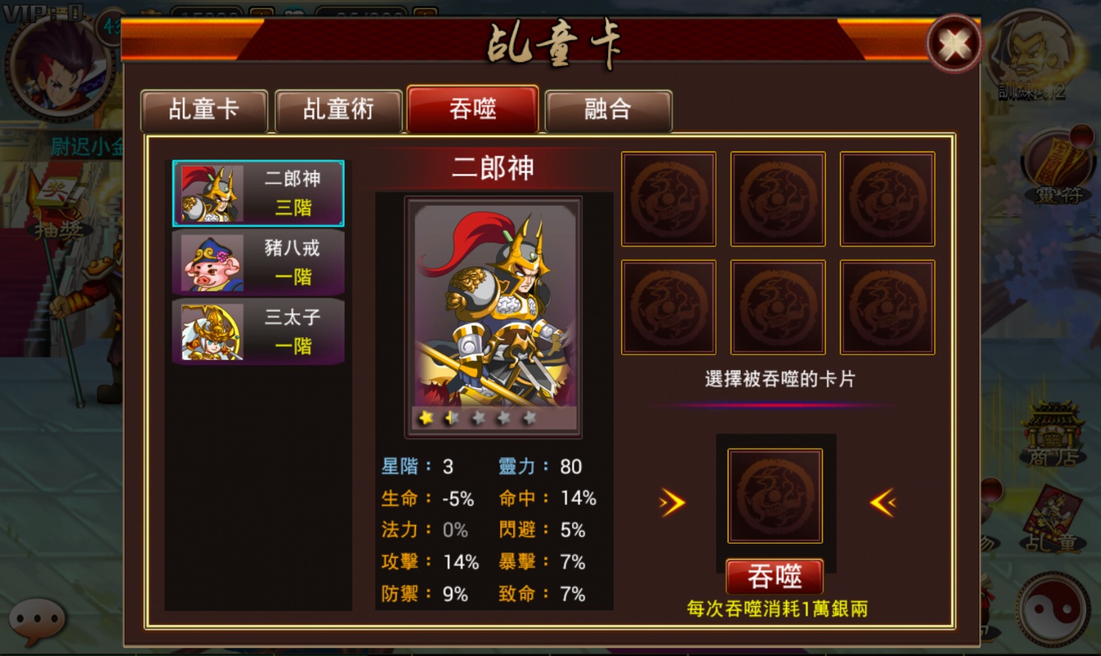 2.每次吞噬將額外耗費10000銀兩。