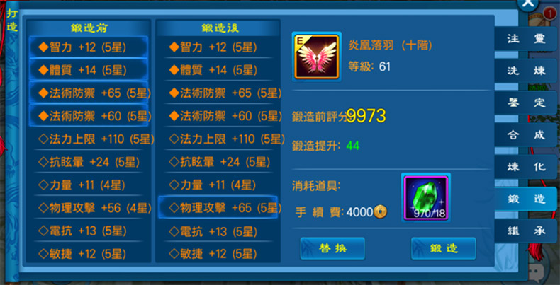 洗煉出想要的屬性數值卻太低嗎?沒關係!你們的心聲我們都聽到了,全新的道具【洗靈石】,可針對洗煉好的屬性,隨機洗靈數值,想要全部屬性都五星再也不是夢想啦!